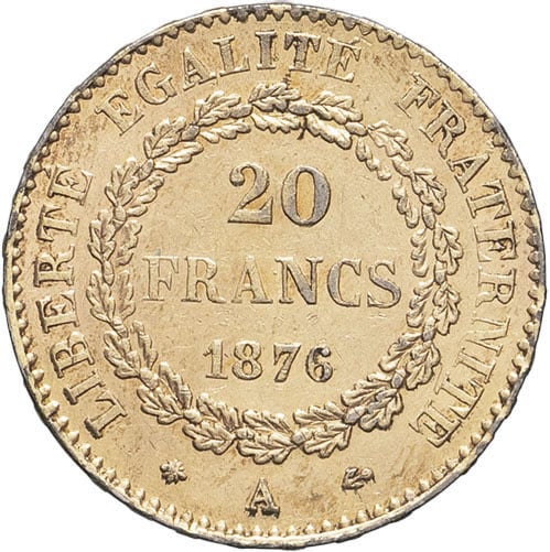 - IIIe République (1870-1940). 20 francs Génie, faux d’époque 1876, A, Paris.