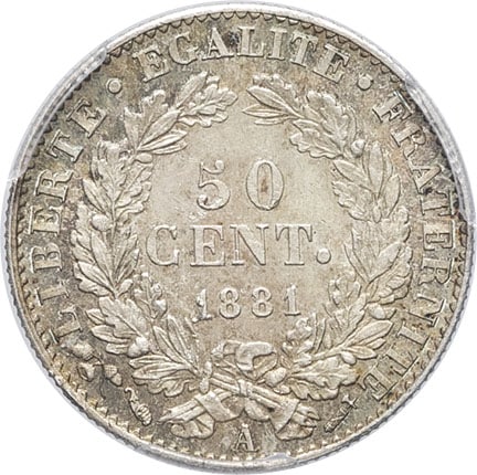 - IIIe République (1870-1940). 50 centimes Cérès 1881, A, Paris.