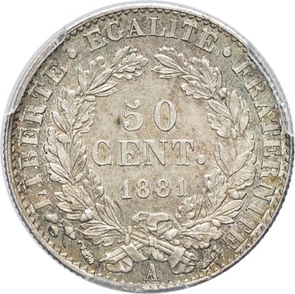 - IIIe République (1870-1940). 50 centimes Cérès 1881, A, Paris.