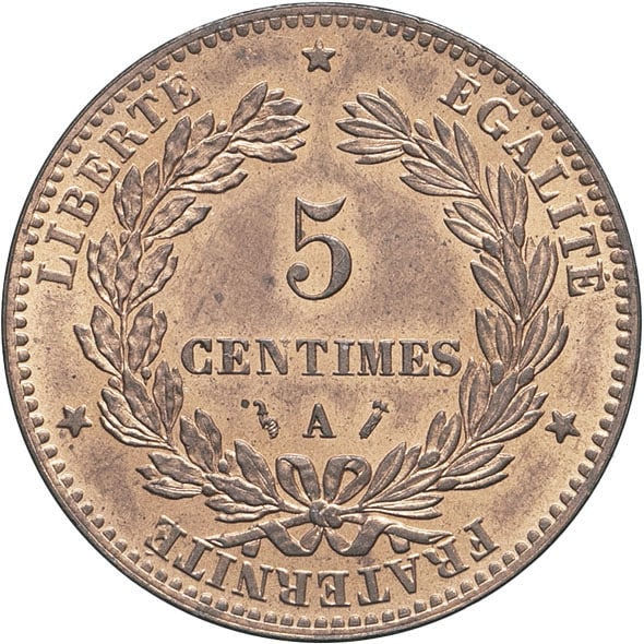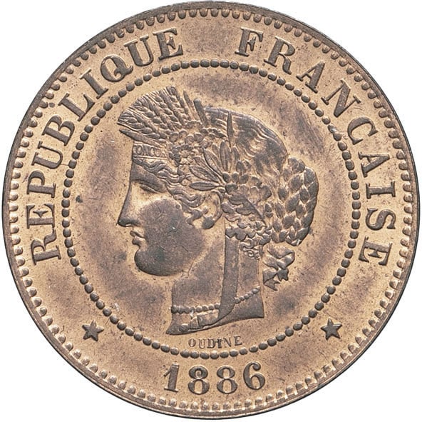 - IIIe République (1870-1940). 5 centimes Cérès 1886, A, Paris.