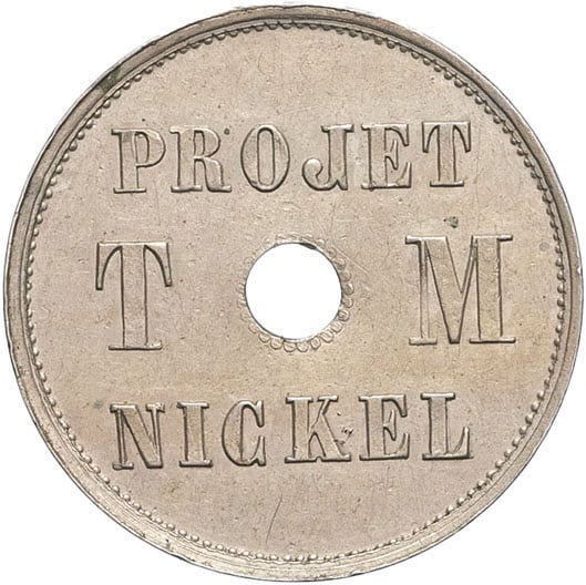 Av. Autour du trou central rond : PROJET / T - M / NICKEL.