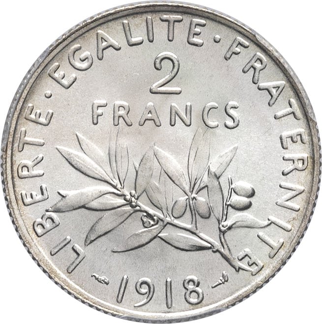 - IIIe République (1870-1940). 2 francs Semeuse 1918, Paris.