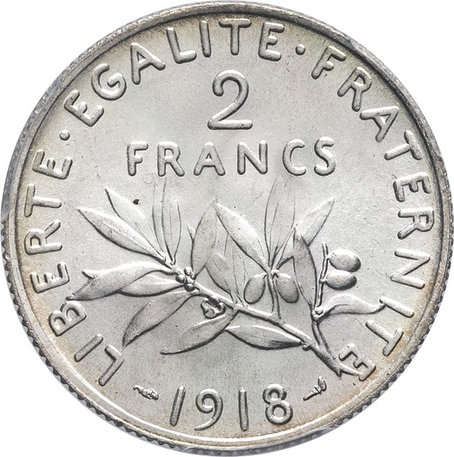 - IIIe République (1870-1940). 2 francs Semeuse 1918, Paris.
