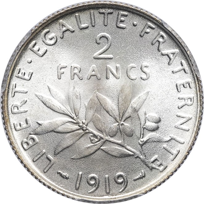 - IIIe République (1870-1940). 2 francs Semeuse 1919, Paris.