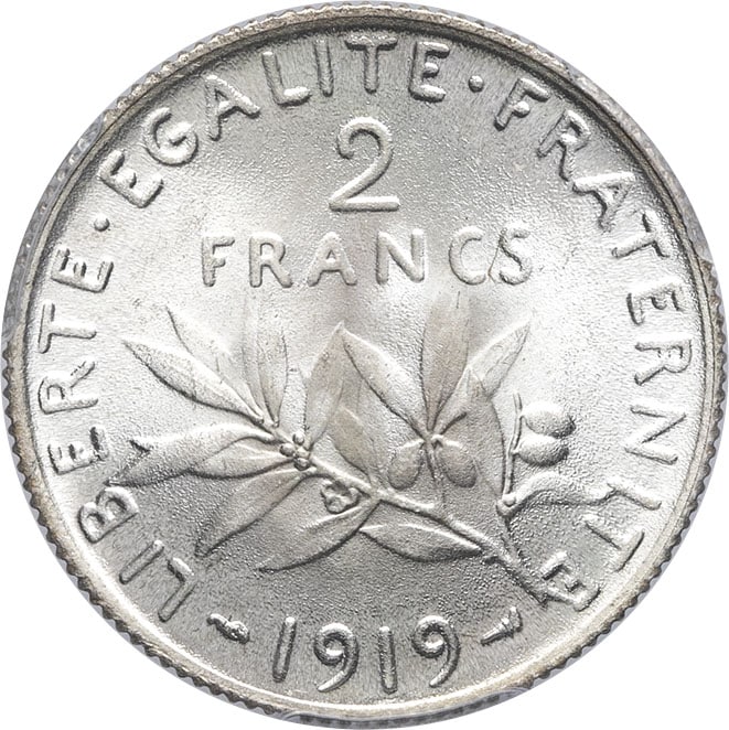 - IIIe République (1870-1940). 2 francs Semeuse 1919, Paris.