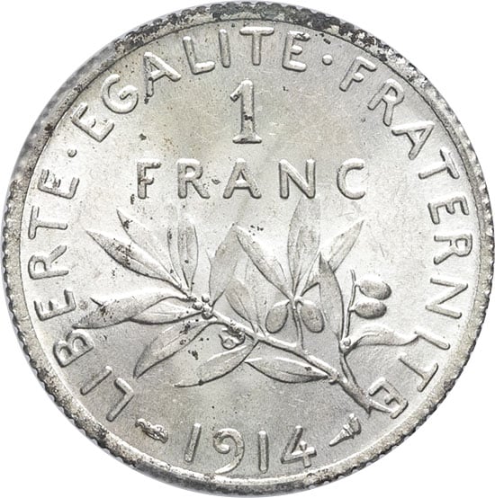 - IIIe République (1870-1940). 1 franc Semeuse 1914, Paris.