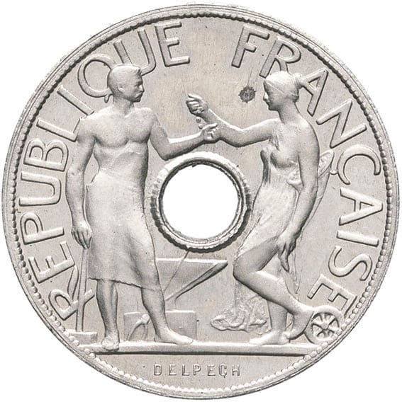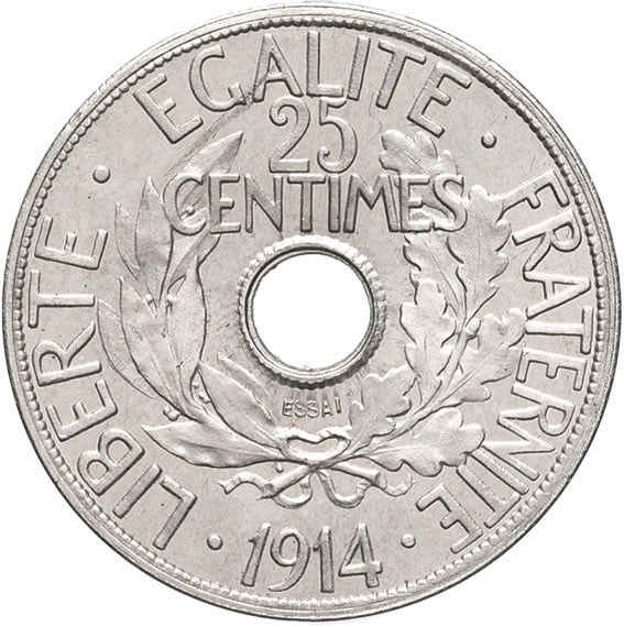 - IIIe République (1870-1940). Essai de 25 centimes, concours de 1913, par Delpech, grand module 1914, Paris.