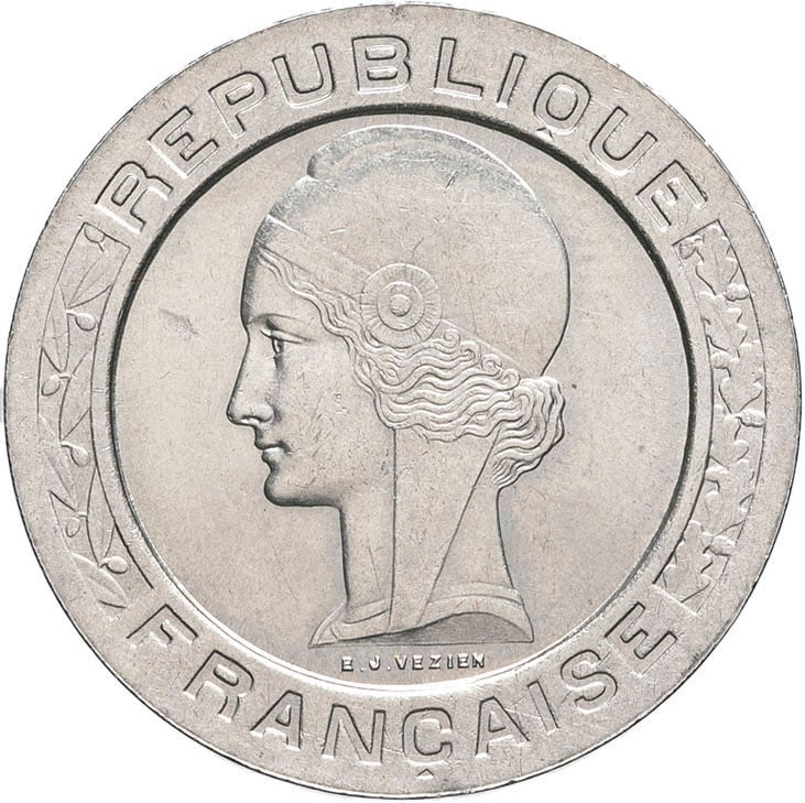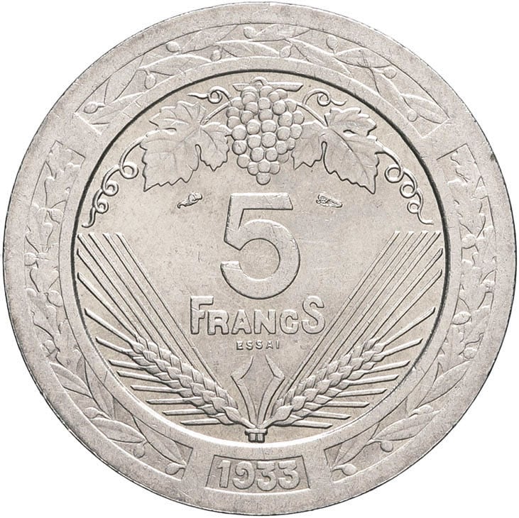 - IIIe République (1870-1940). Essai de 5 francs, concours de Vézien 1933, Paris.