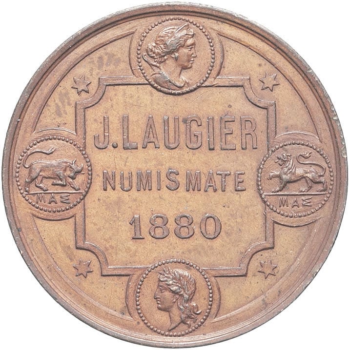 - IIIe République (1870-1940). Jeton de Joseph Laugier, conservateur du Cabinet des médailles de Marseille 1880.