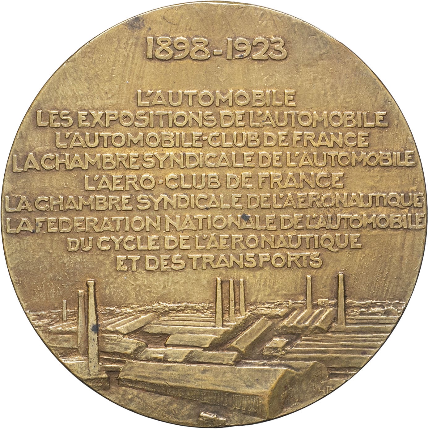 - IIIe République (1870-1940). Médaille, hommage au marquis de Dion, pour les 25 ans de la chambre syndicale de l’automobile, par H. Bouchard 1923, Paris (Janvier et Berchot).