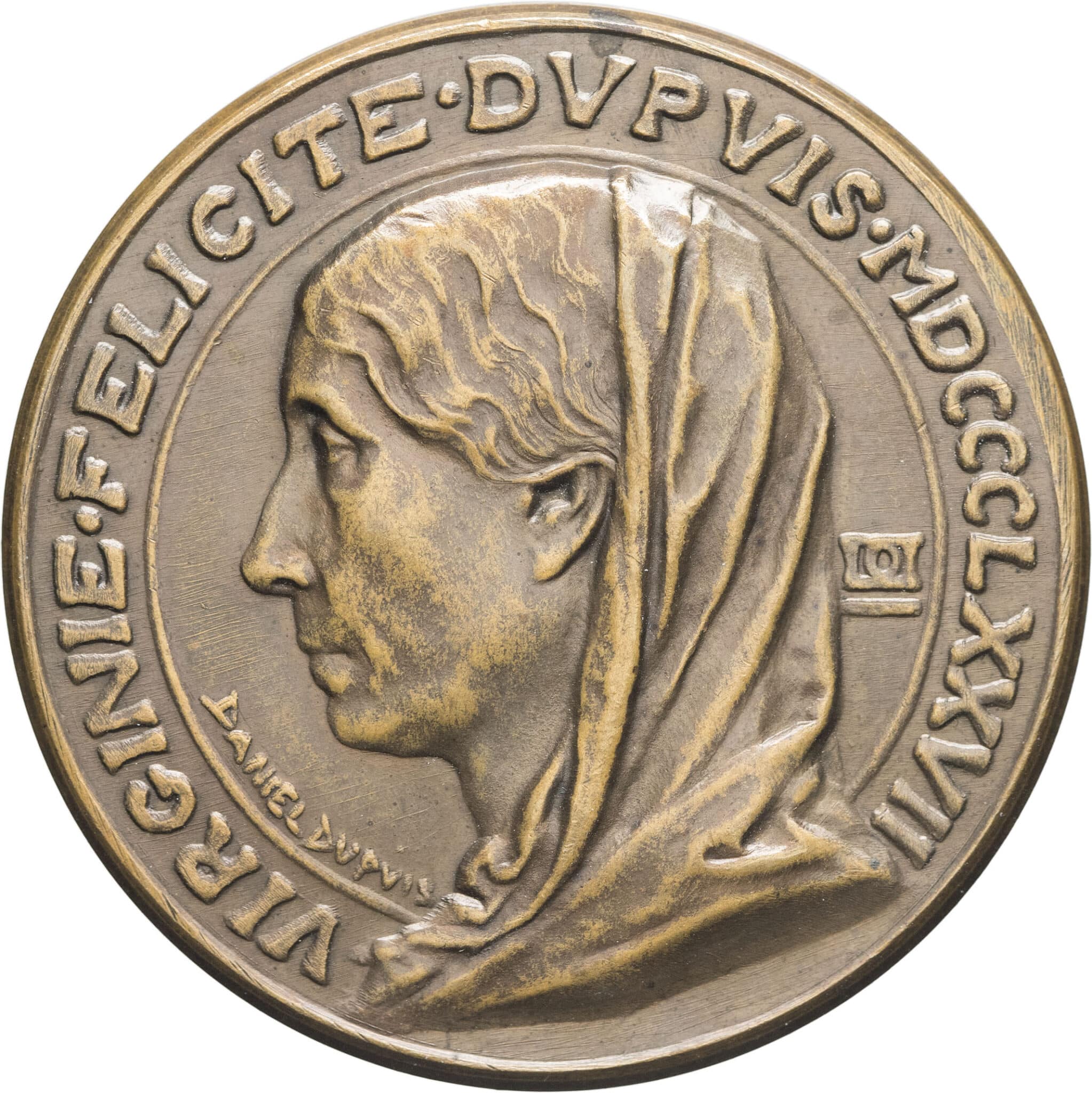- IIIe République (1870-1940). Médaille uniface, Virginie Félicité Dupuis, par Daniel-Dupuis 1877, Paris.