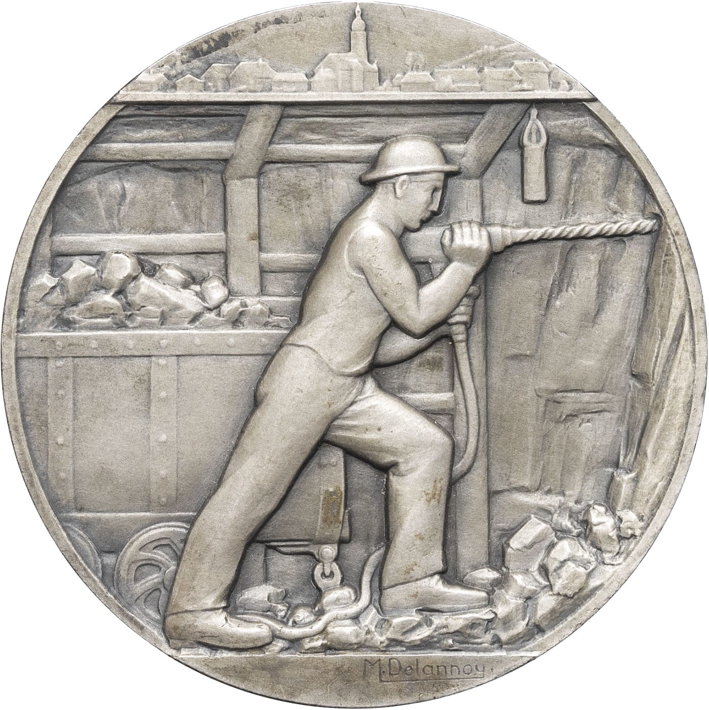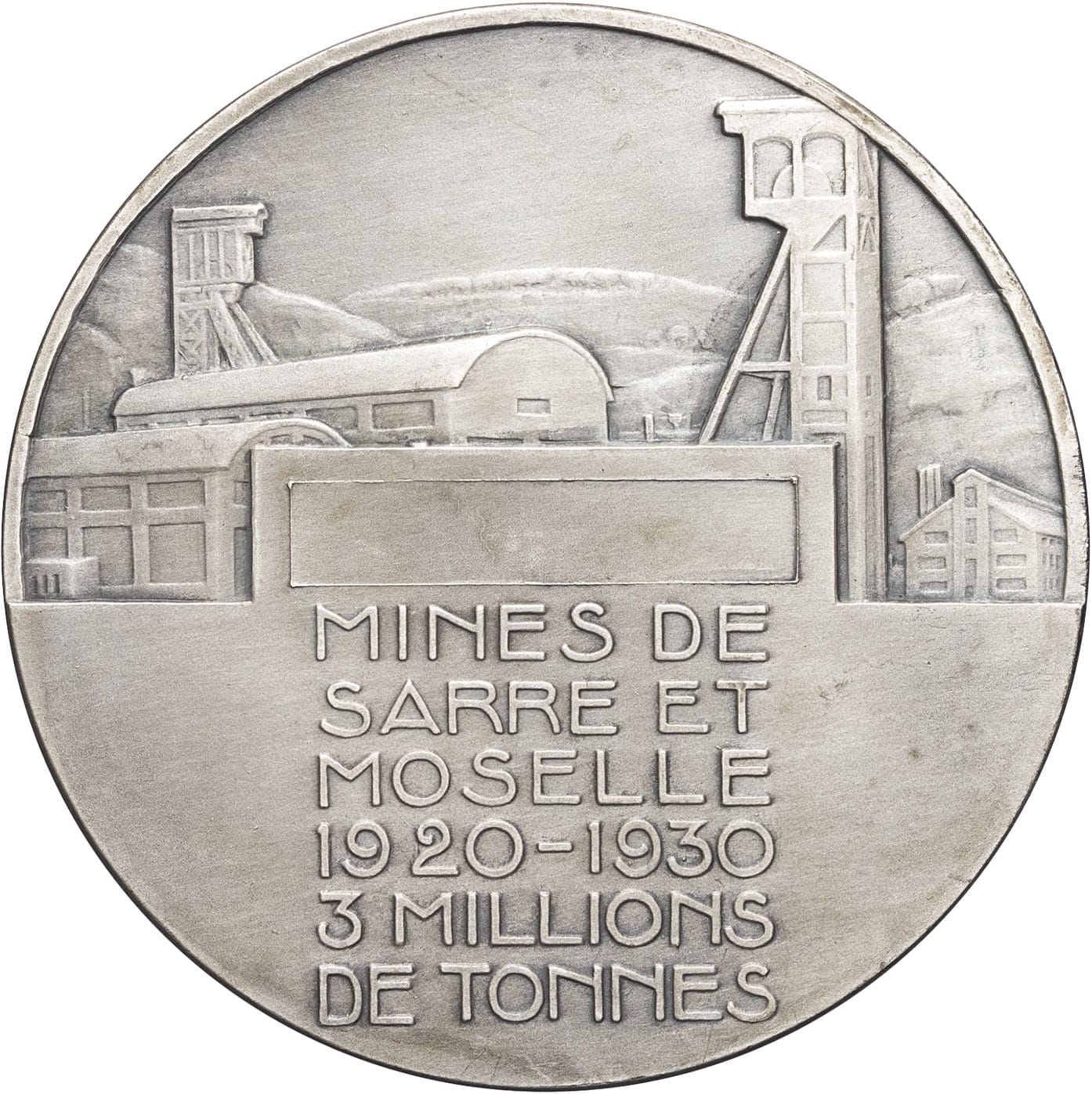 - IIIe République (1870-1940). Médaille, 3 millions de tonnes de charbon extraites des mines de Sarre et Moselle, par M. Delannoy 1930, Paris.