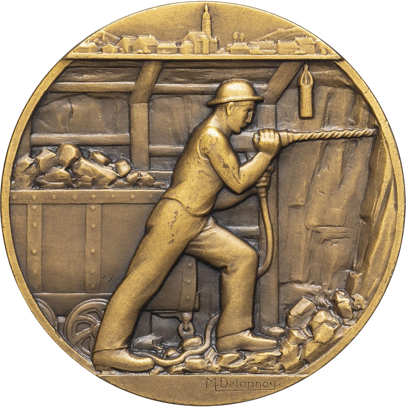 - IIIe République (1870-1940). Médaille, 3 millions de tonnes de charbon extraites des mines de Sarre et Moselle, par M. Delannoy 1930, Paris.