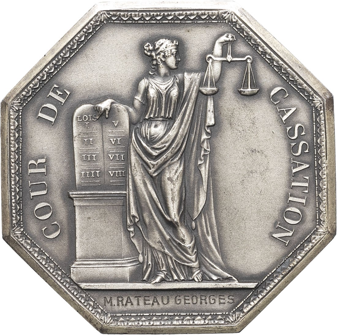 - IIIe République (1870-1940). Médaille, Cour de cassation, d’après Gatteaux 1835 (frappe début XXe s.), Paris.