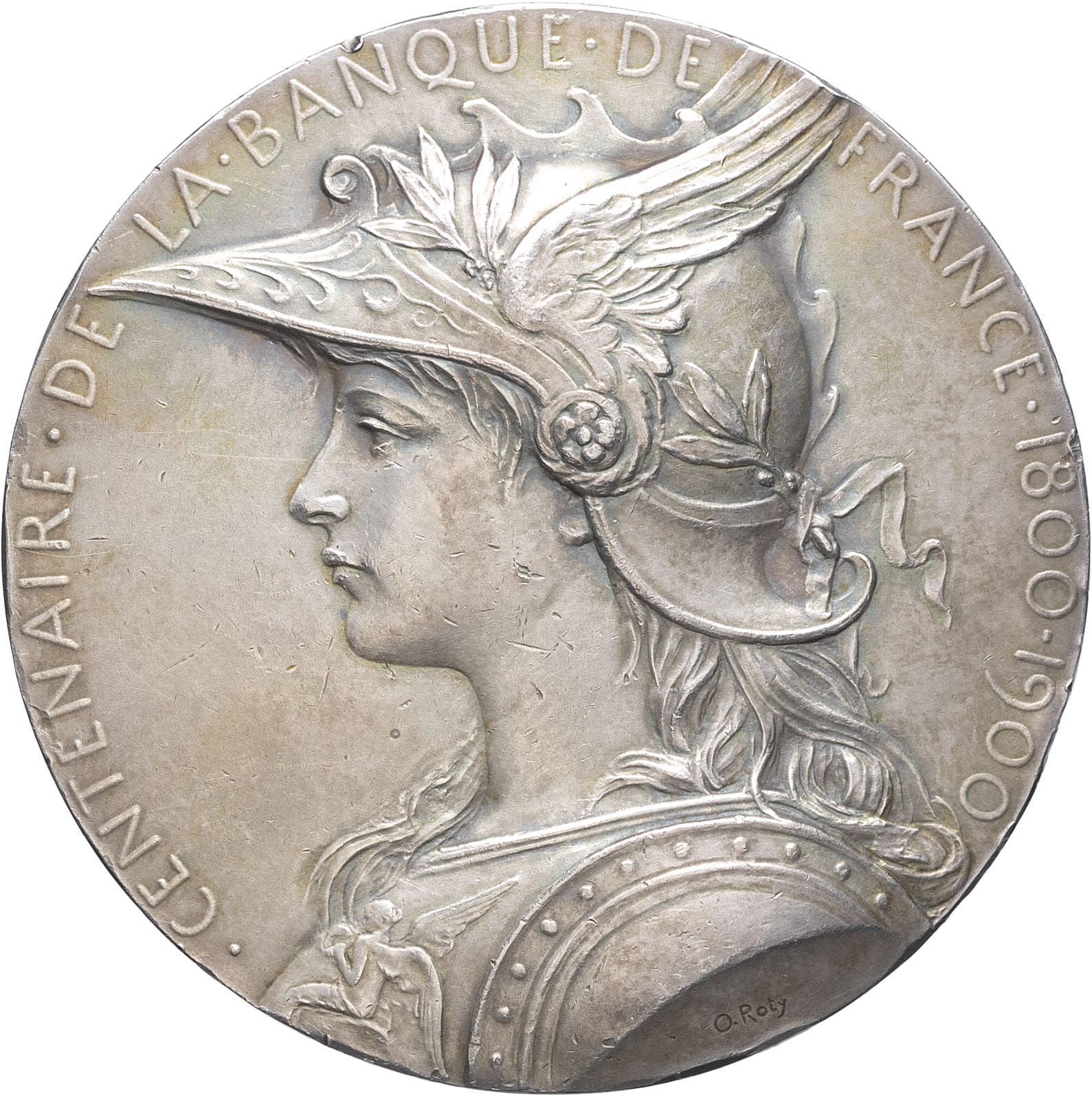 - IIIe République (1870-1940). Médaille, centenaire de la Banque de France par O. Roty 1900, Paris.