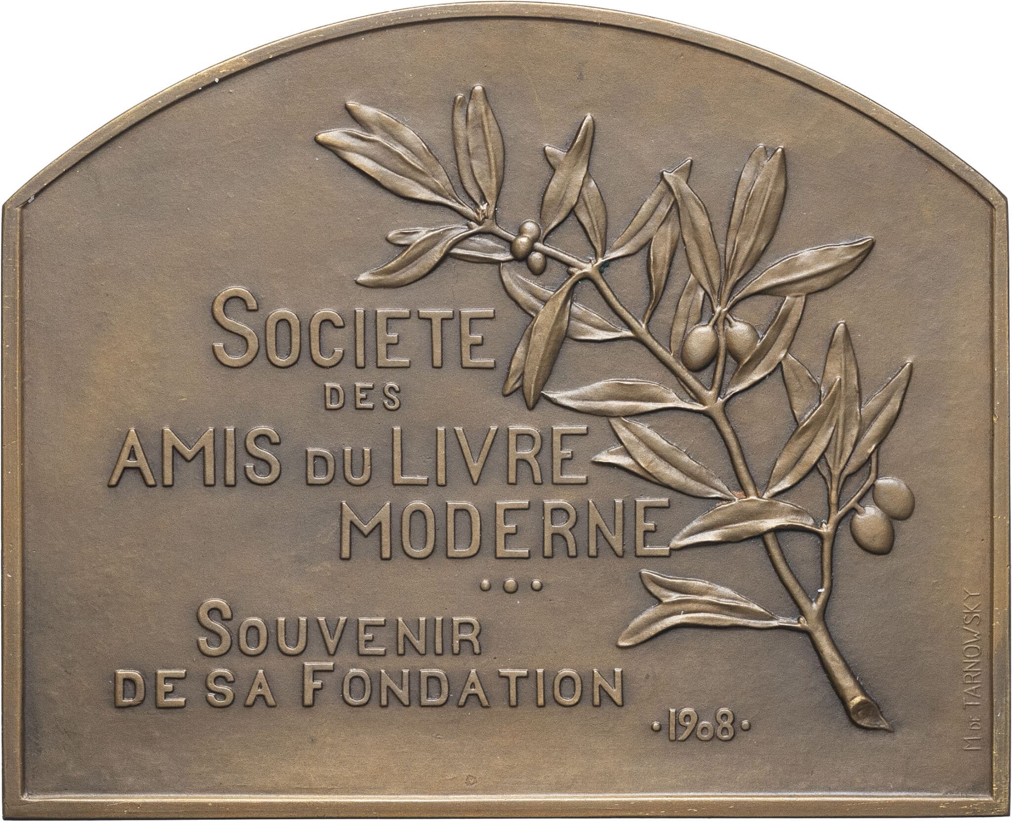 - IIIe République (1870-1940). Plaque, souvenir de la fondation de la Société des amis du livre moderne, par Michel de Tarnowsky 1908, Paris (Janvier et Berchot).