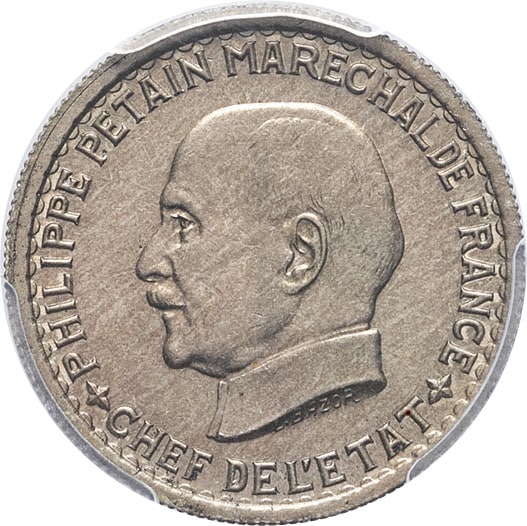 - État Français (1940-1944). 5 francs Pétain 1941, Paris.
