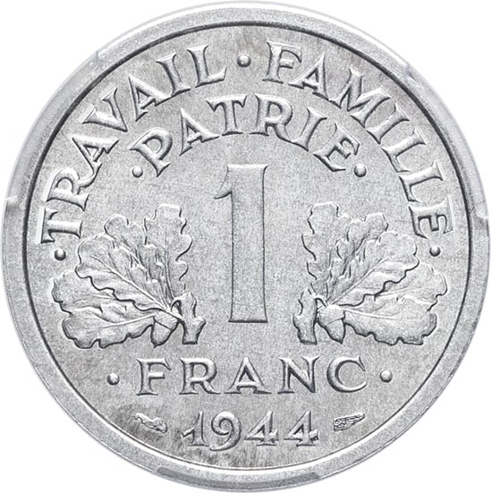 - État Français (1940-1944). 1 franc Bazor 1944, B, Beaumont-le-Roger.