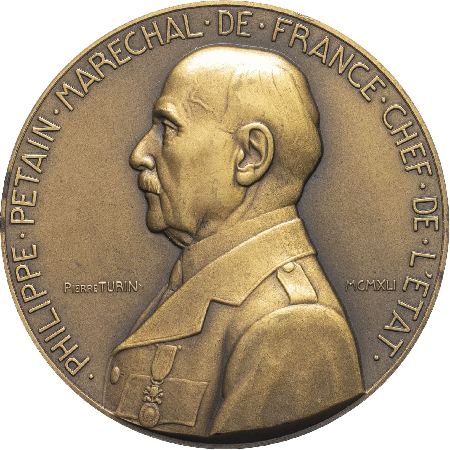 - État Français (1940-1944). Médaille, Philippe Pétain maréchal de France, chef de l’État, par Pierre Turin 1941, Paris.