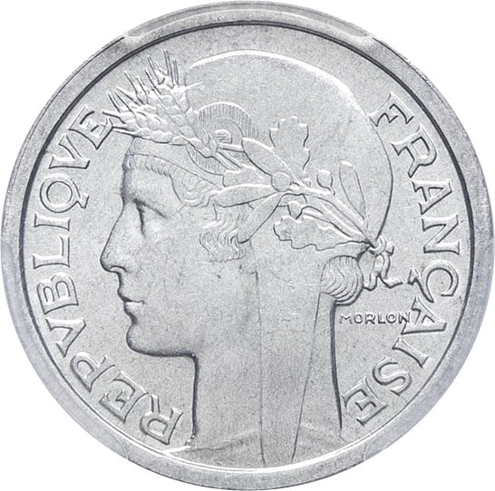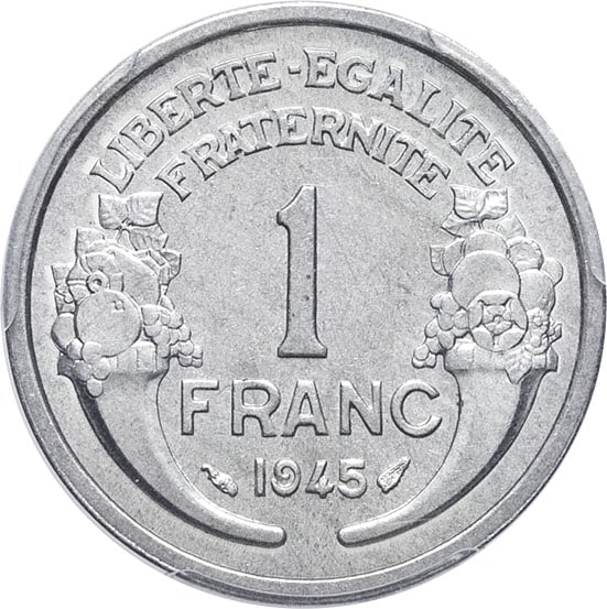 - Gouvernement provisoire de la République française (1944-1946). 1 franc Morlon en aluminium 1945, Paris.