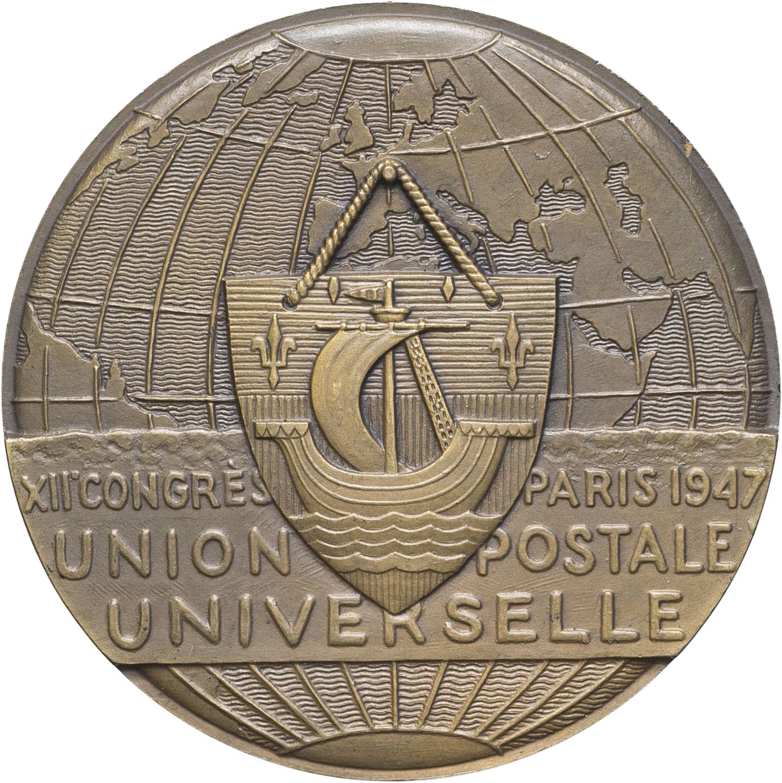 - IVe République (1947-1958). Médaille, XIIe congrès de l’Union postale universelle de Paris, par R. Cochet 1947, Paris.