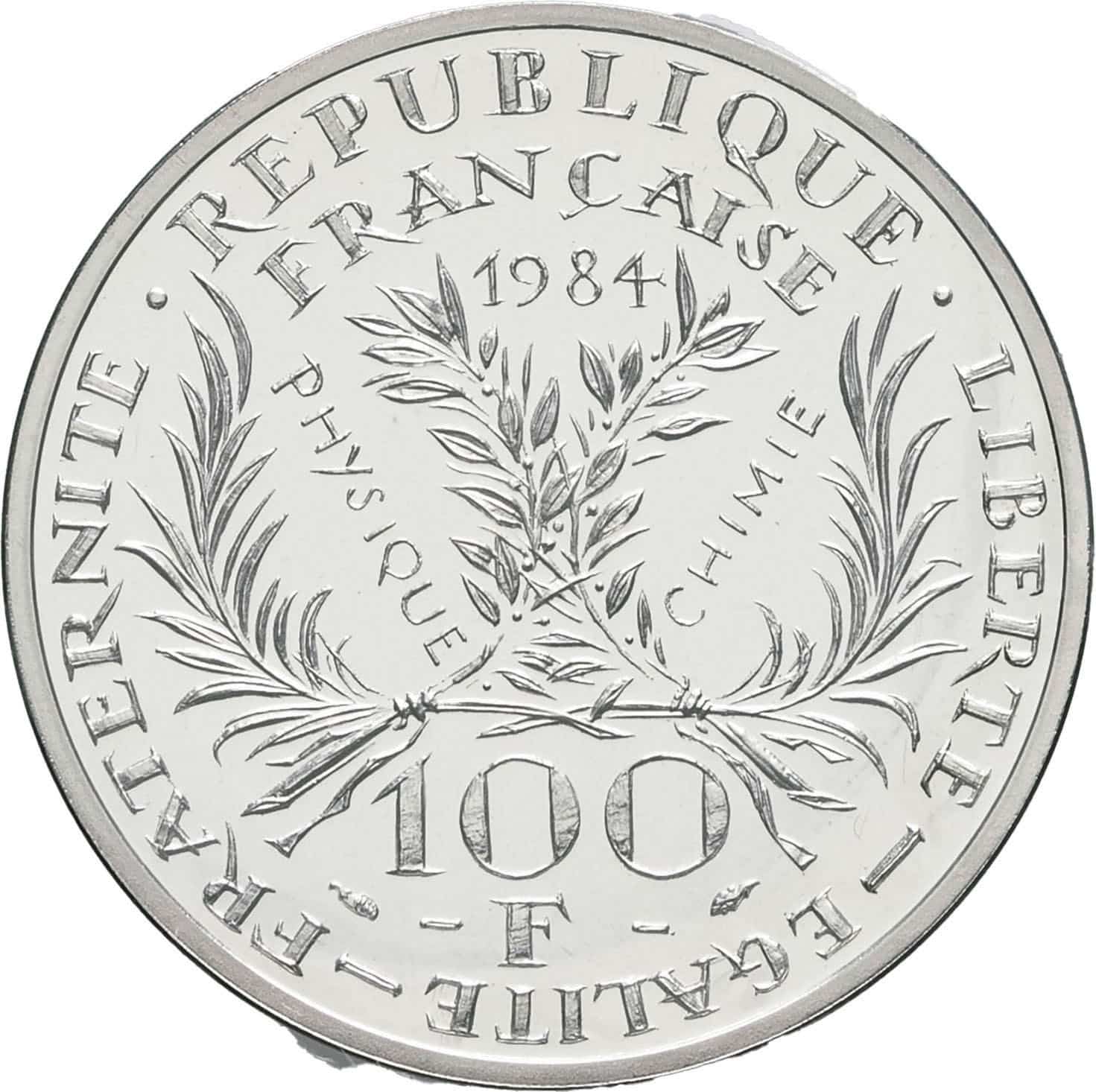 - Ve République (1958 à nos jours). Piéfort de 100 francs Marie Curie 1984, Pessac.