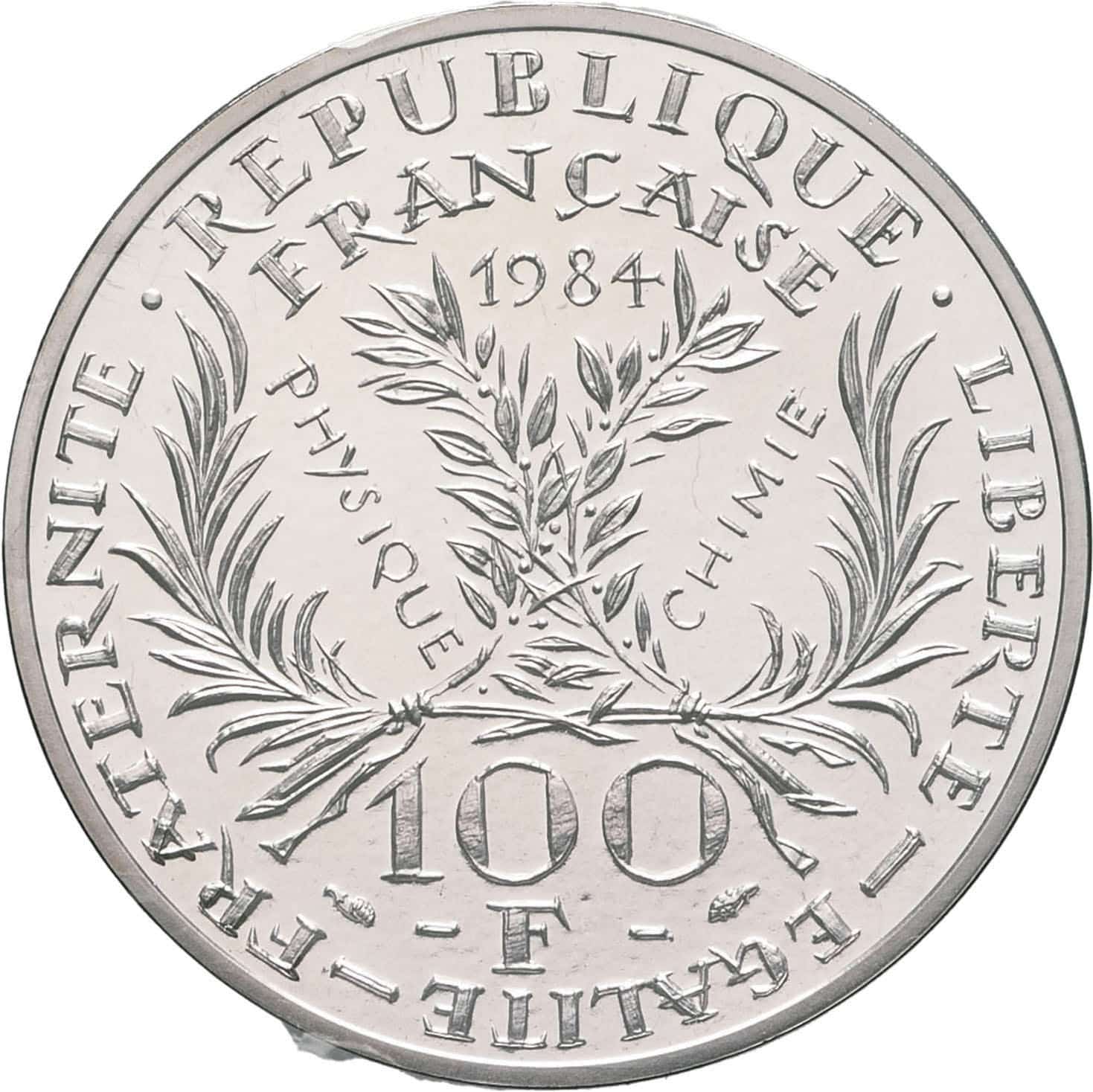 - Ve République (1958 à nos jours). Piéfort de 100 francs Marie Curie 1984, Pessac.