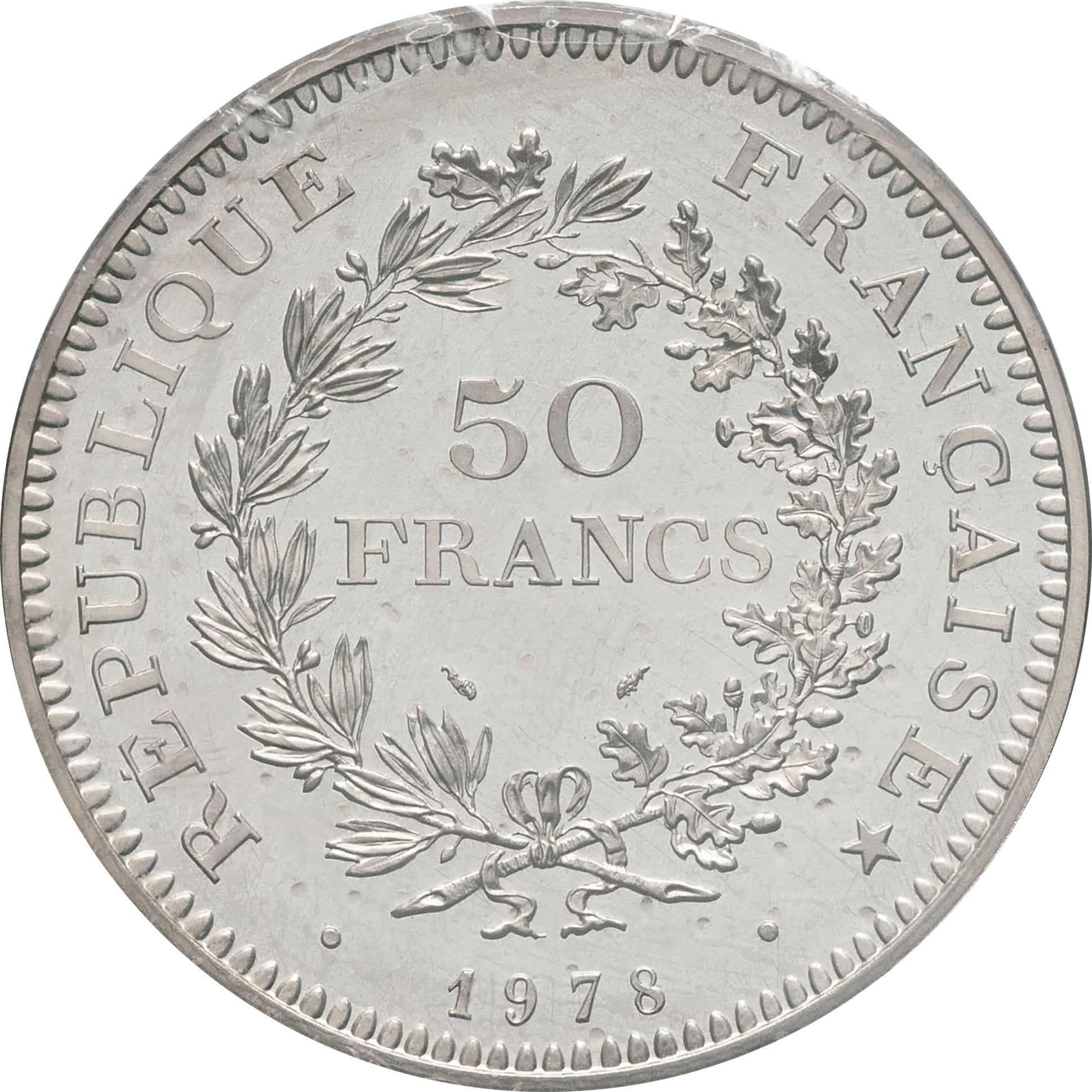 - Ve République (1958 à nos jours). Piéfort de 50 francs Hercule 1978, Pessac.