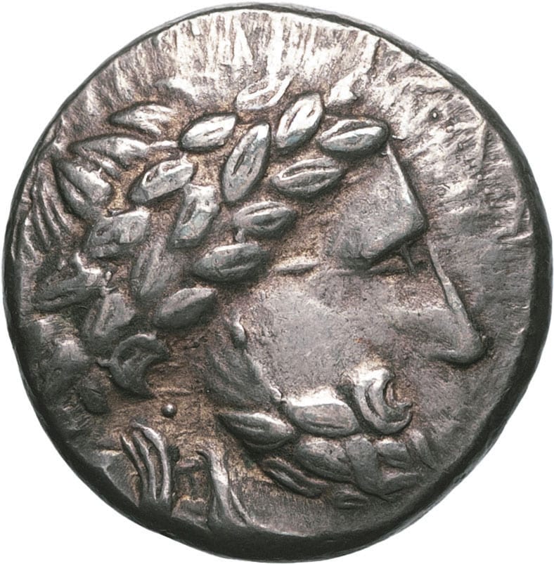 Av. Tête laurée de Zeus ou Philippe II à droite.