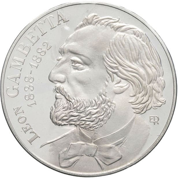 - Ve République (1958 à nos jours). Piéfort de 10 francs Gambetta en argent 1982, Pessac.