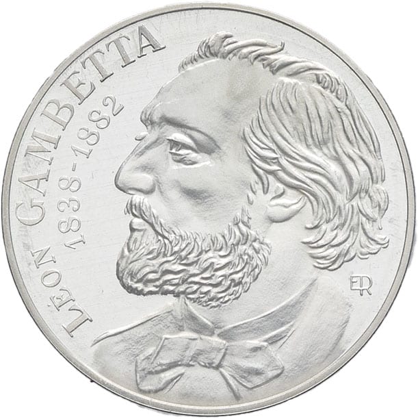 - Ve République (1958 à nos jours). Piéfort de 10 francs Gambetta en argent 1982, Pessac.