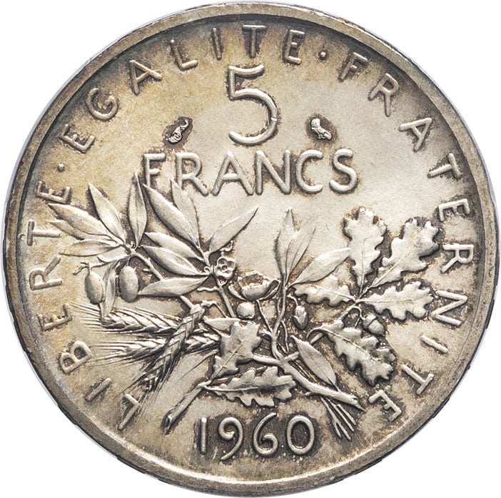 - Ve République (1958 à nos jours). 5 francs Semeuse 1960, Paris.