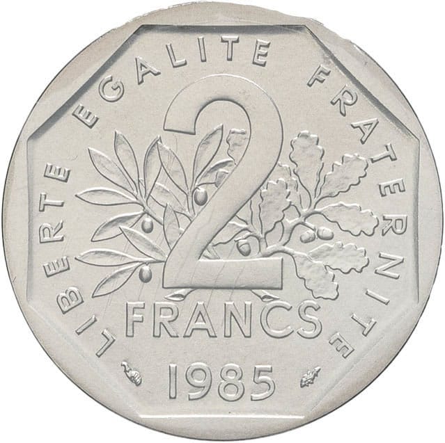 - Ve République (1958 à nos jours). Piéfort de 2 francs Semeuse 1985, Pessac.