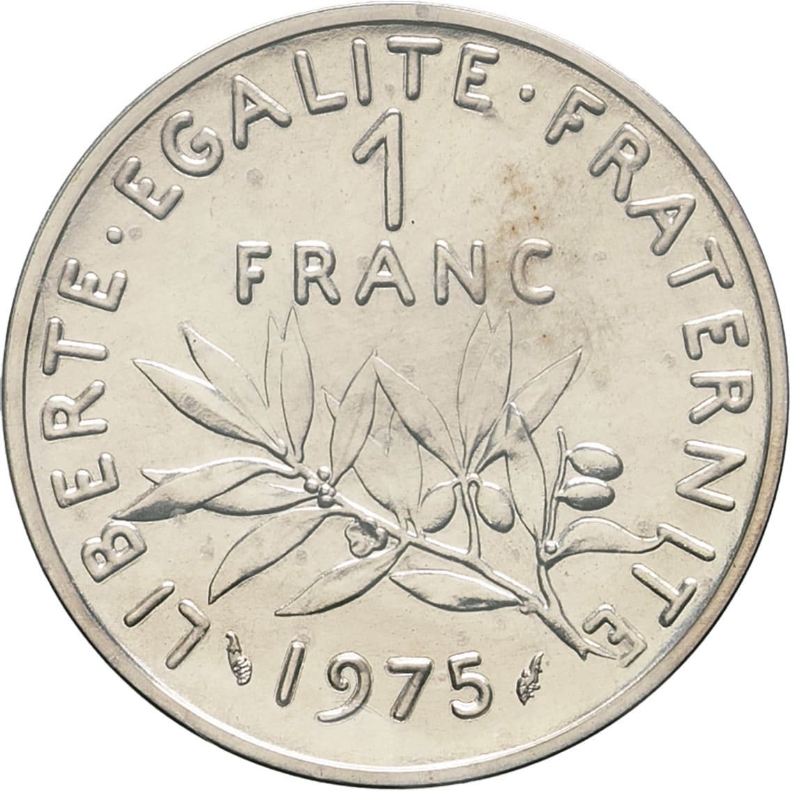 - Ve République (1958 à nos jours). Piéfort de 1 franc Semeuse en argent 1975, Pessac.
