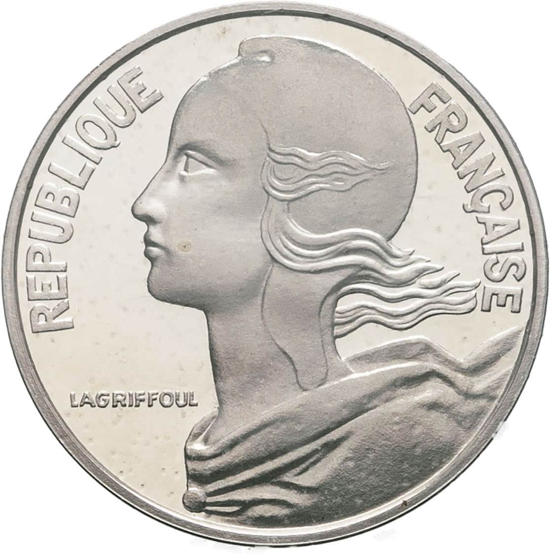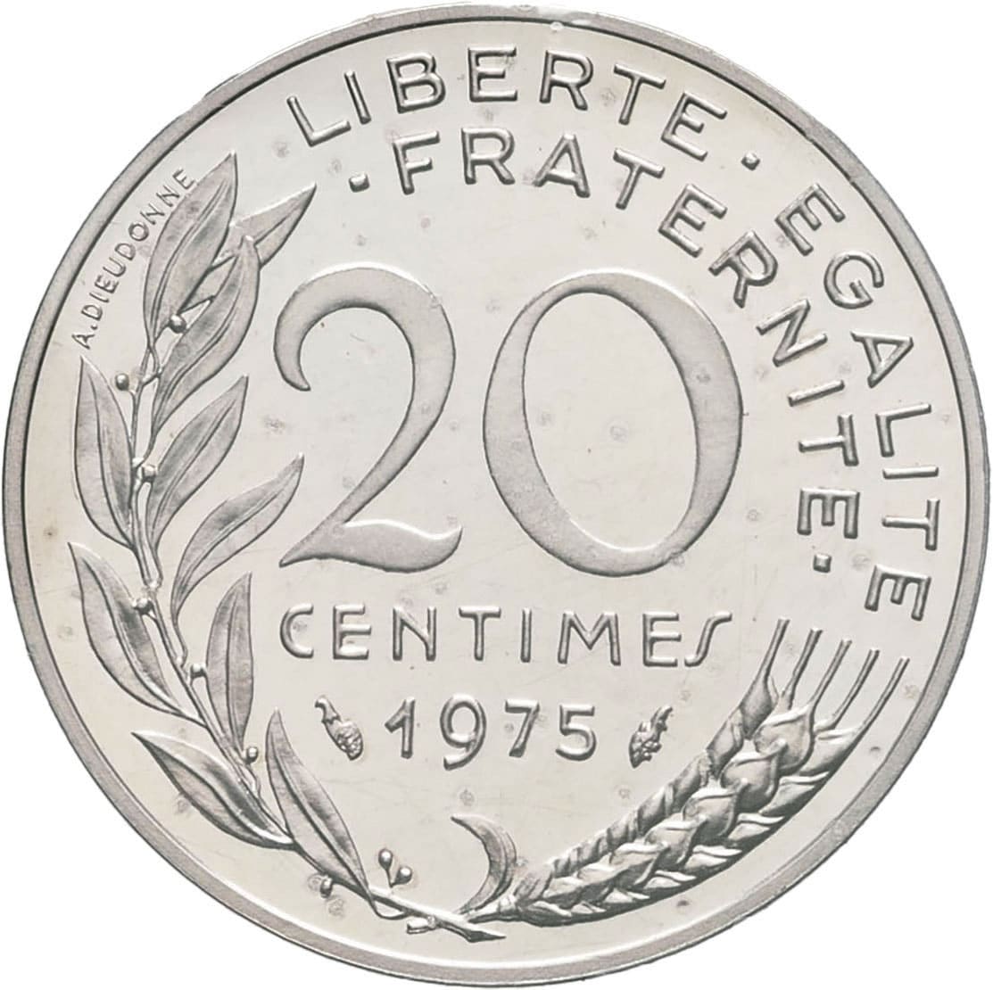 - Ve République (1958 à nos jours). Piéfort de 20 centimes Marianne en argent 1975, Pessac.