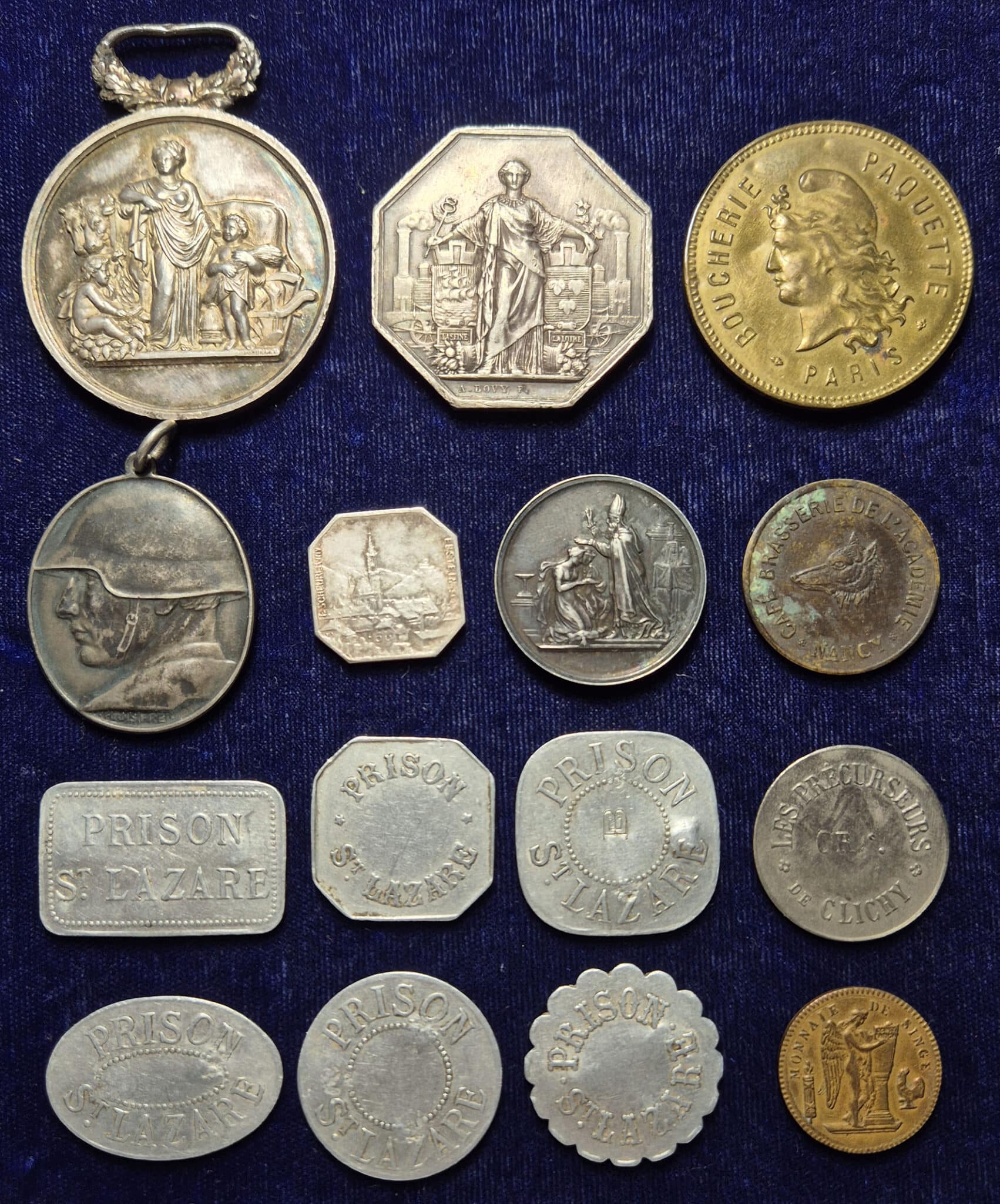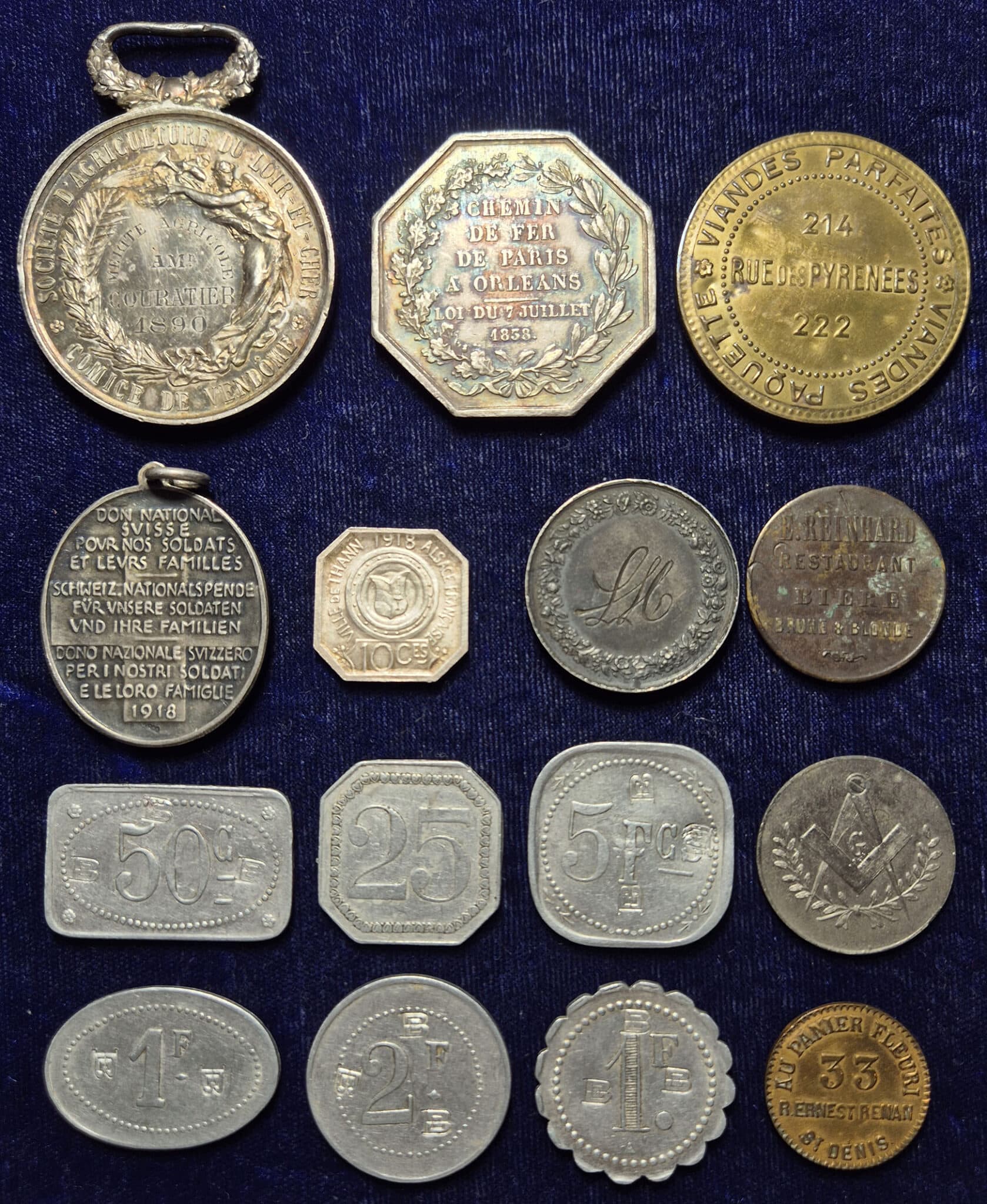 - Lot de 15 jetons, médailles et monnaies de nécessité.