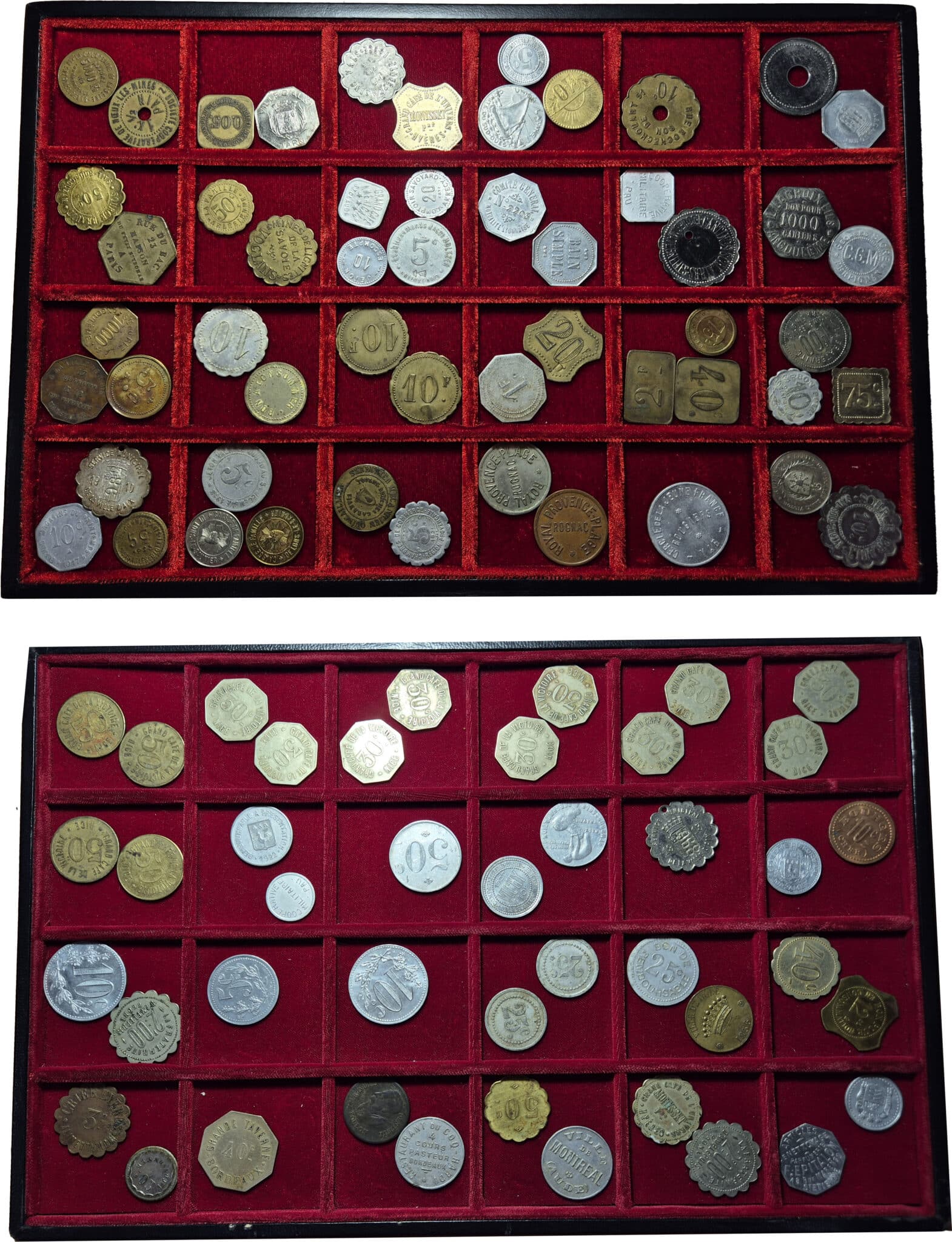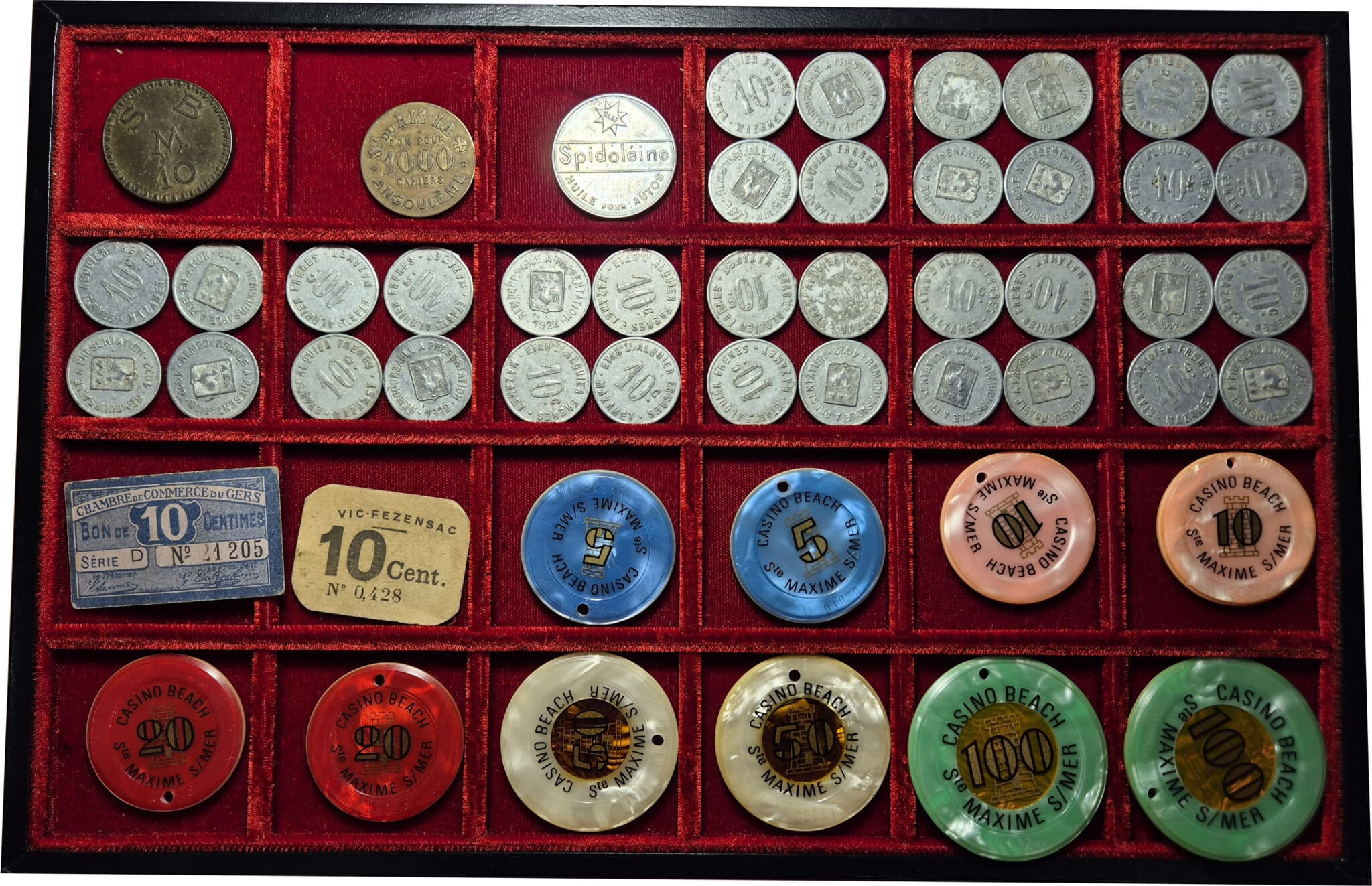 - Lot de 148 monnaies de nécessité et jetons de casino.