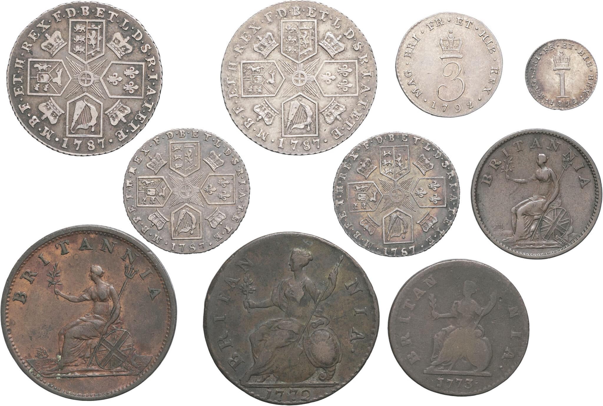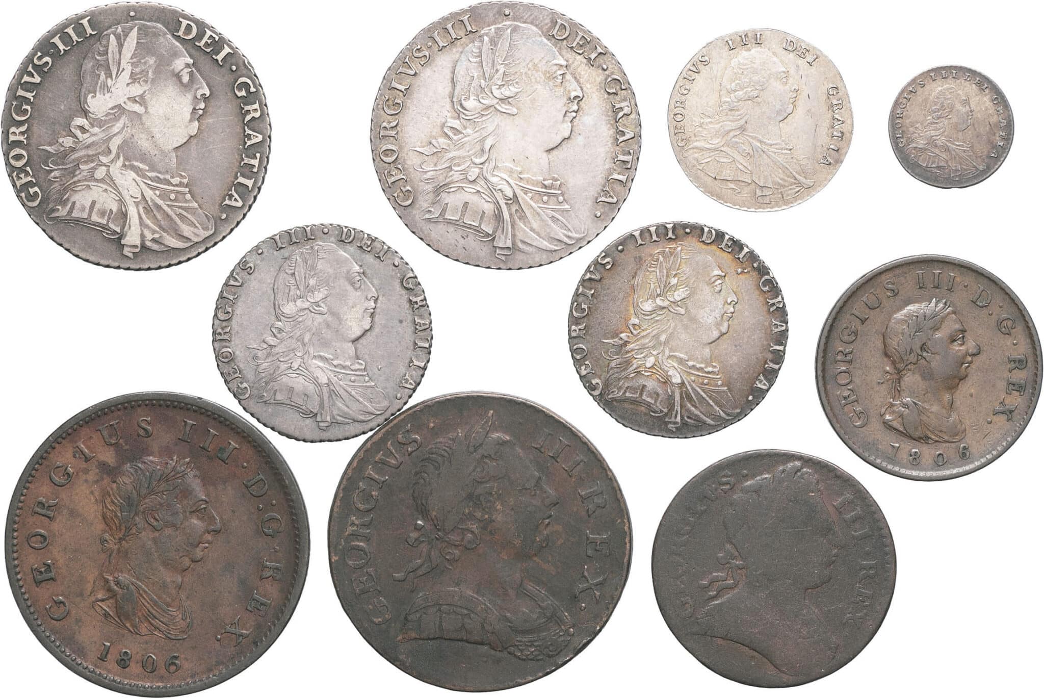 - UNITED KINGDOM Georges III (1760-1820). Lot de 10 monnaies, Londres.