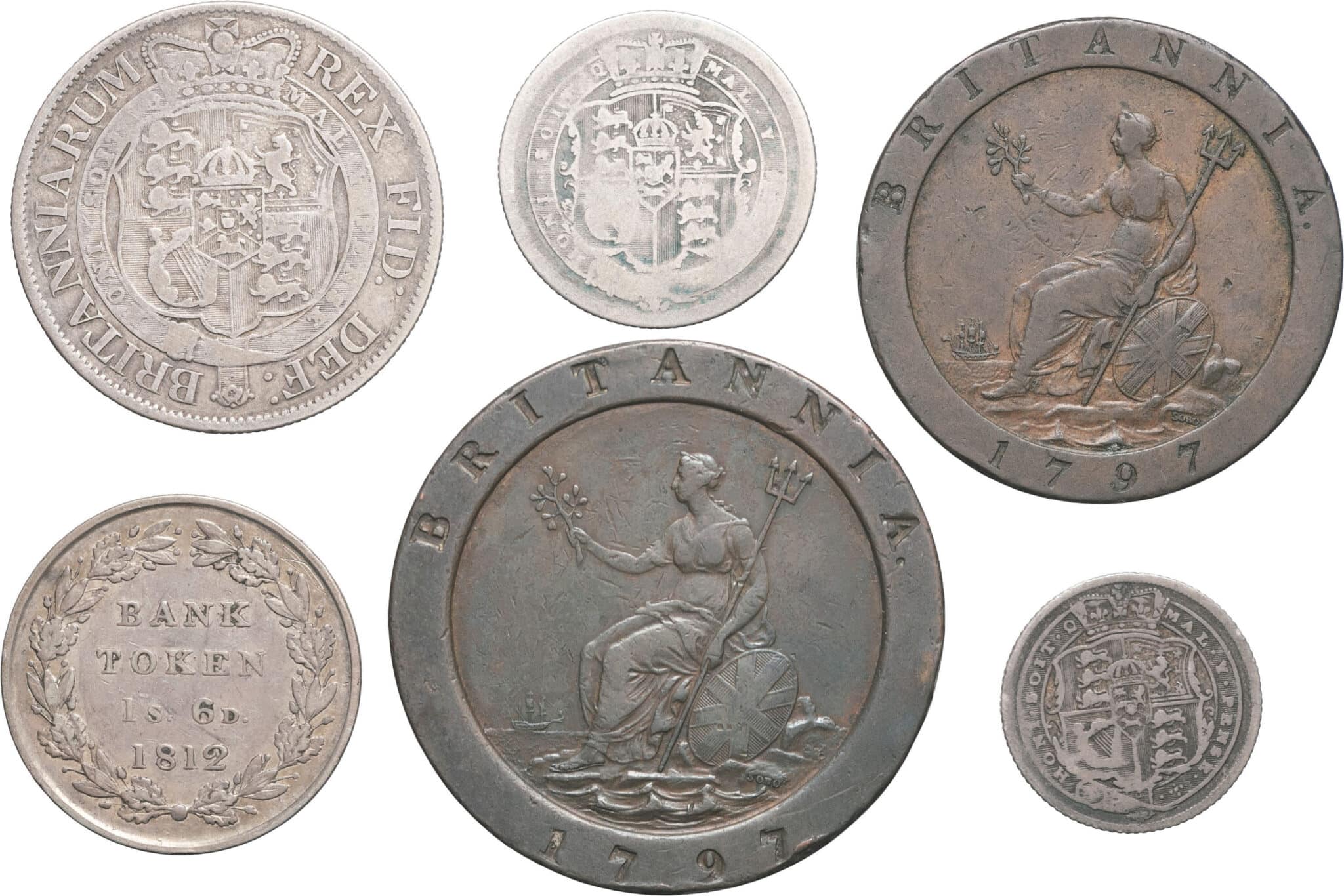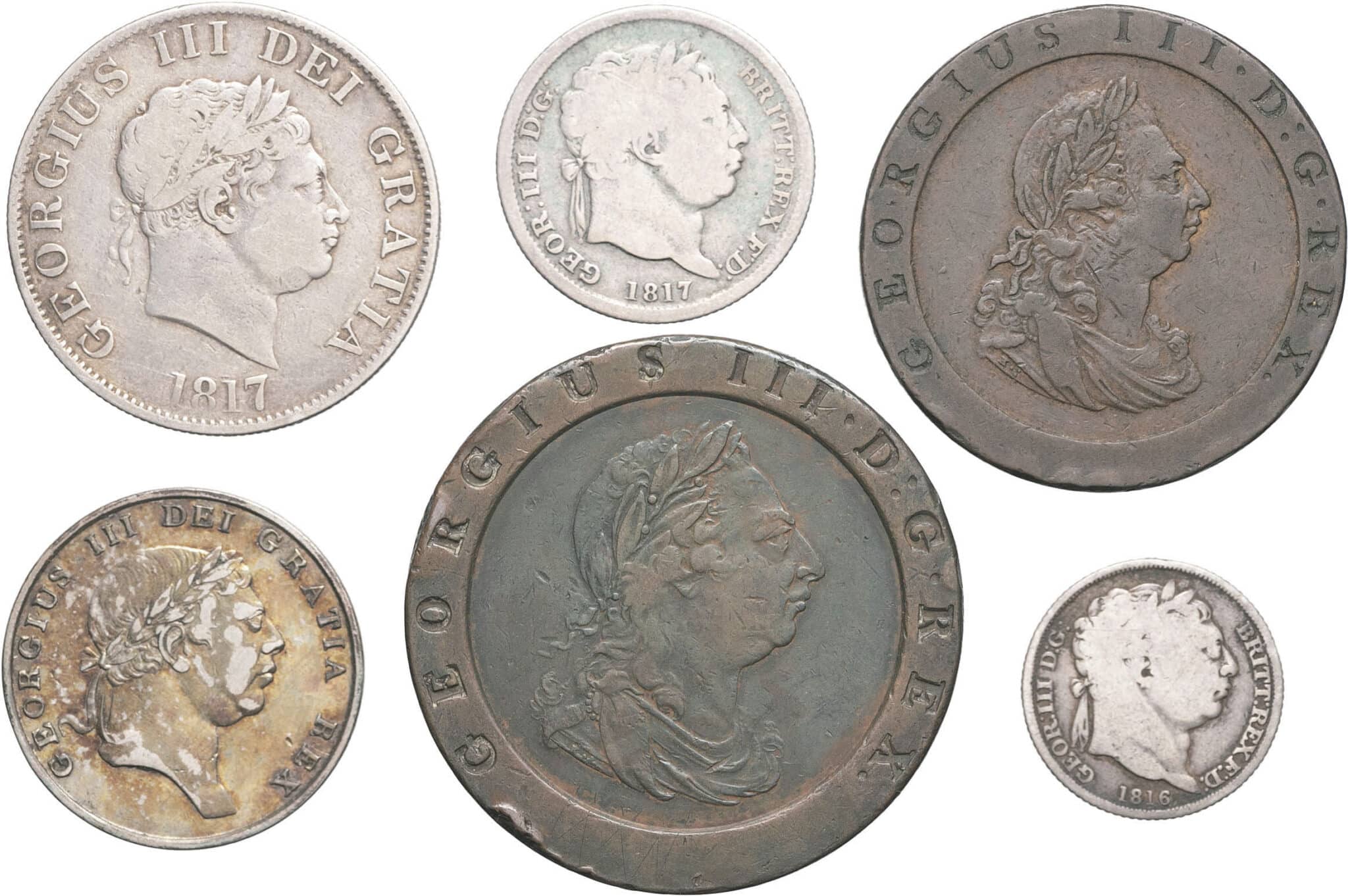 - UNITED KINGDOM Georges III (1760-1820). Lot de 9 monnaies, Londres.