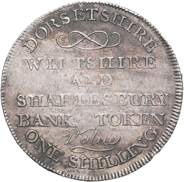 - UNITED KINGDOM Georges III (1760-1820). Dorsetshire, jeton d’un shilling, banque de Wiltshire & Shaftesburn 14 mars 1811.