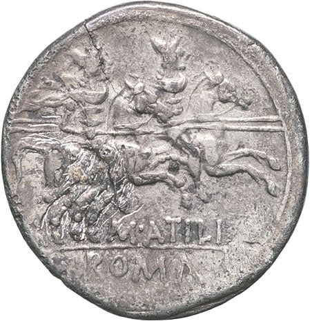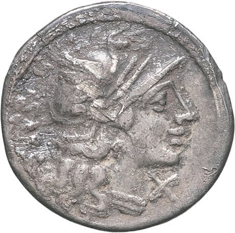 - ROMAN REPUBLIC M. Atilius Saranus. Denier ND (148 av. J.-C.), Rome.