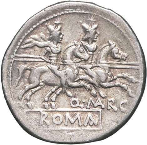 - ROMAN REPUBLIC Q. Marcius Libo. Denier ND (148 av. J.-C.), Rome.