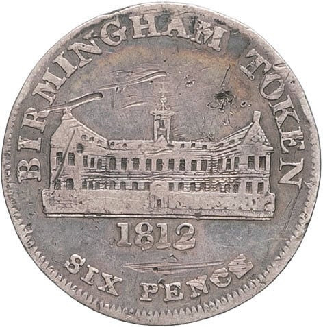 - UNITED KINGDOM Georges III (1760-1820). Warwickshire, jeton de six pence, Birmingham 1812.