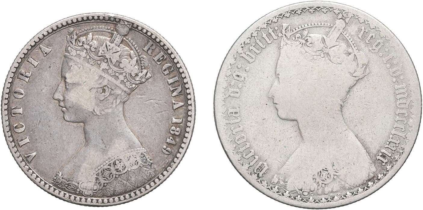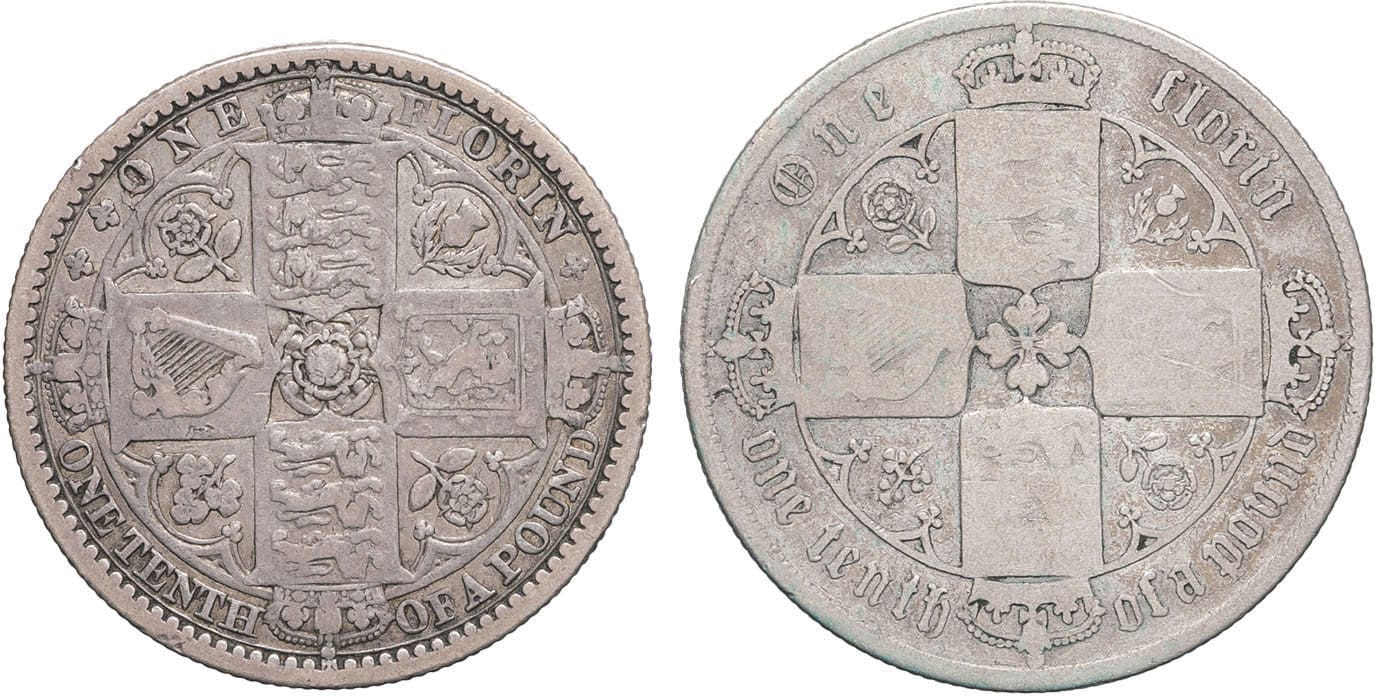 - UNITED KINGDOM Victoria (1837-1901). Lot de 2 florins 1849 et 1879, Londres.
