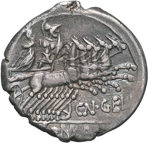 - ROMAN REPUBLIC Cn. Gellius. Denier ND (138 av. J.-C.), Rome.