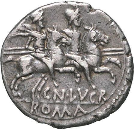 - ROMAN REPUBLIC Cn. Lucretius Trio. Denier ND (136 av. J.-C.), Rome.