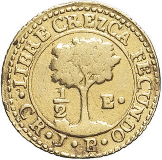 - République fédérale d’Amérique centrale (1823-1841). 1/2 escudo 1848 CR JB, San José.