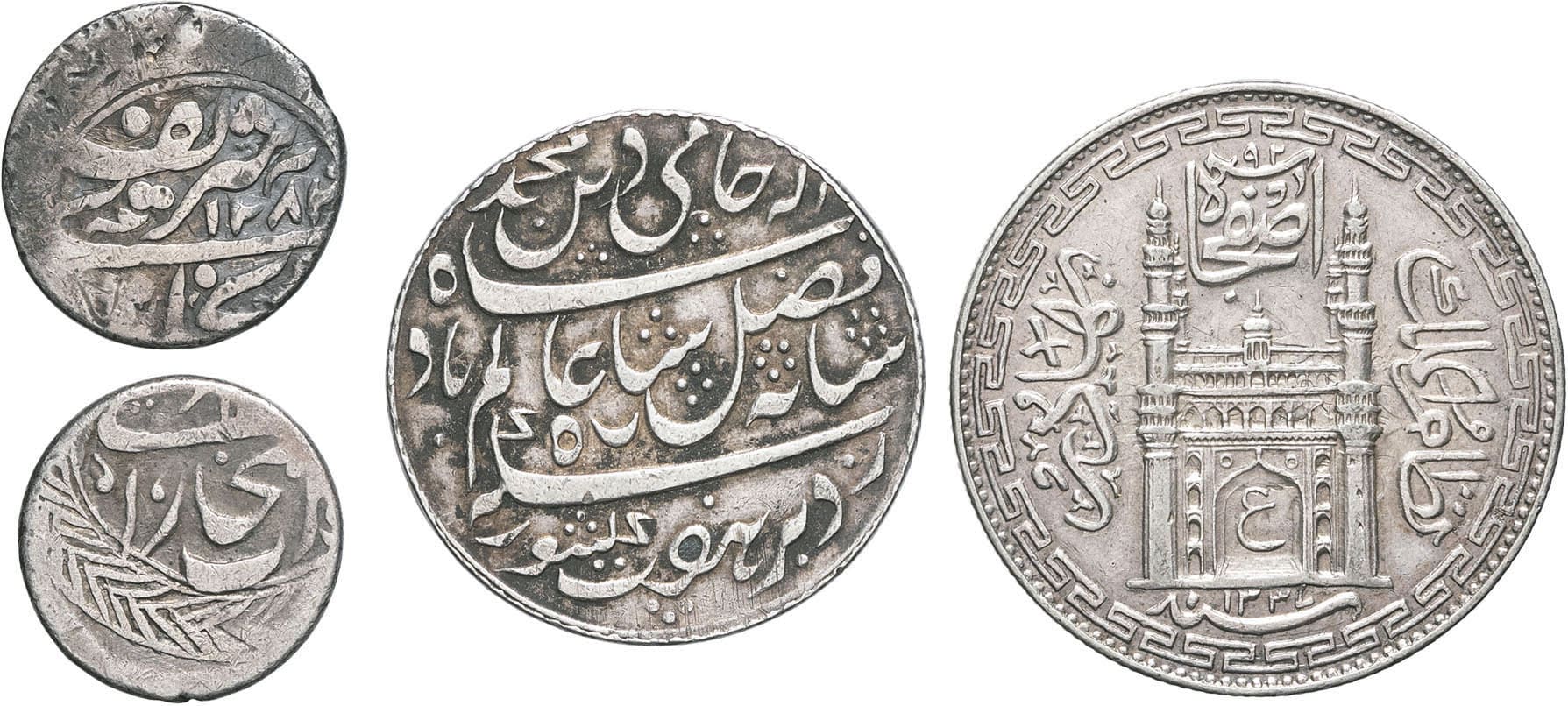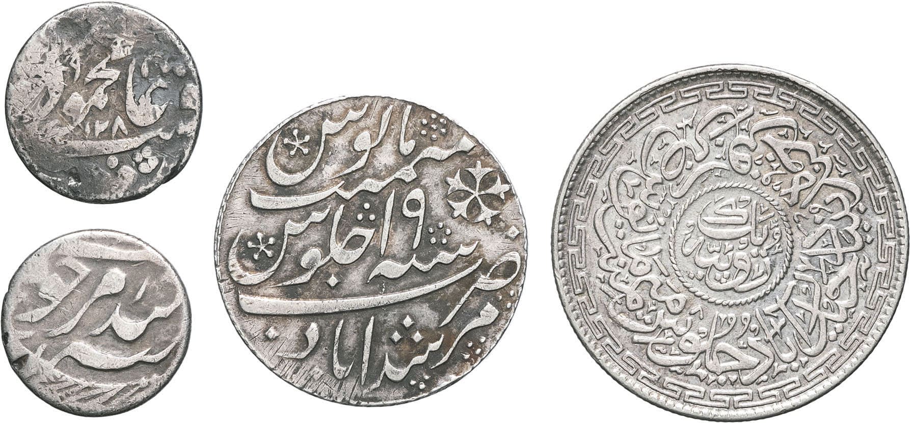 Hyderabad, 1 roupie 1337/8 (KM.53a) - Présidence du Bengale, 1 roupie An 19, Murishabad (KM.109) - 1/4 roupie 1282 - 1/4 roupie