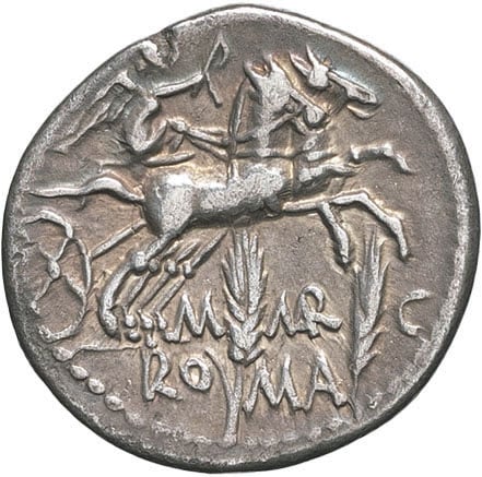 - ROMAN REPUBLIC M. Marcius. Denier ND (134 av. J.-C.), Rome.