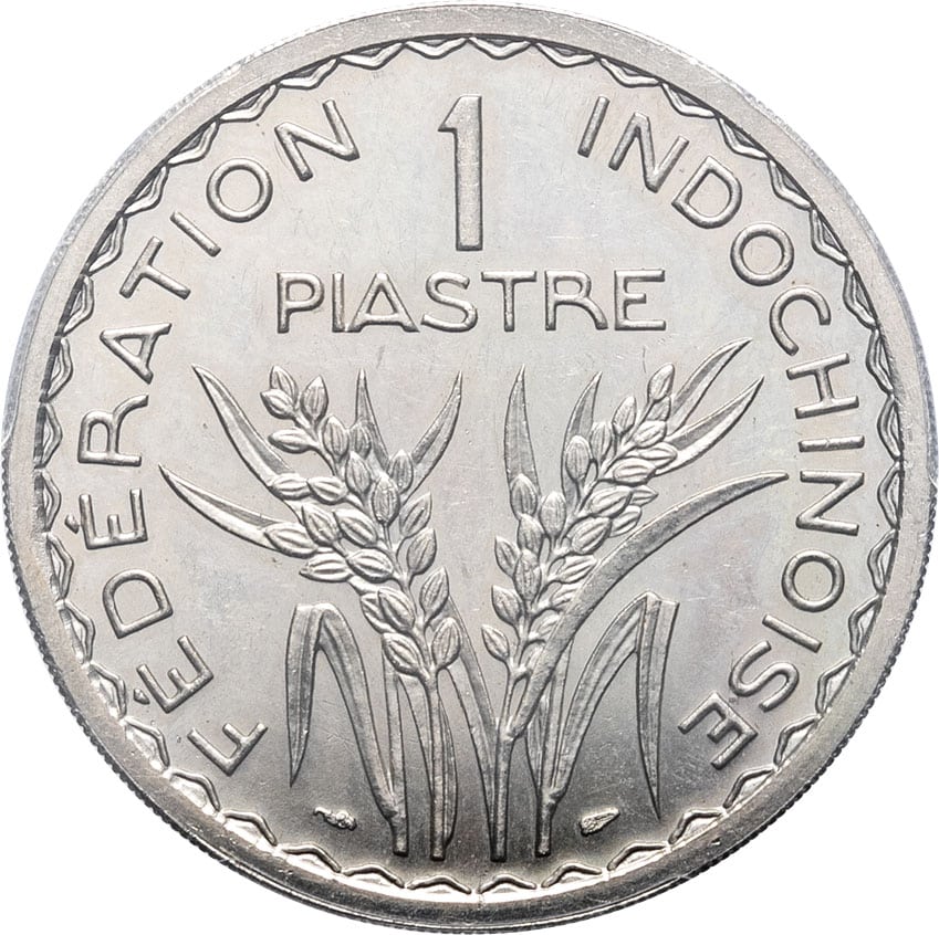 Rv. FÉDÉRATION - INDOCHINOISE. Deux épis de riz, au-dessus 1 PIASTRE et au-dessous (différents).